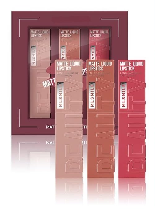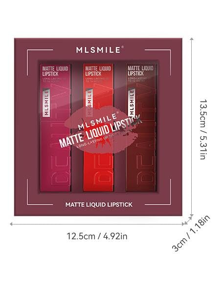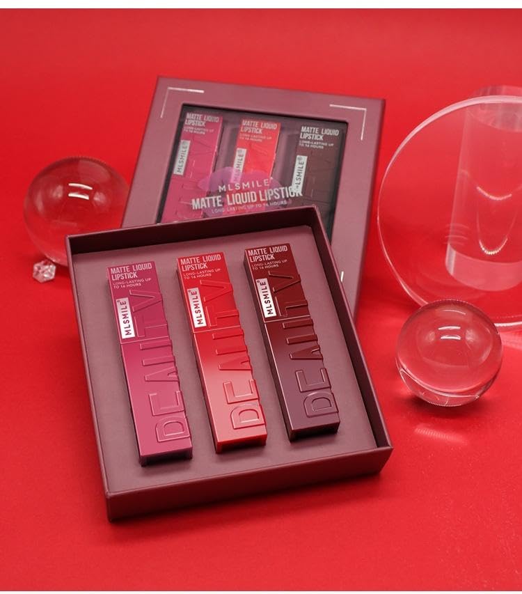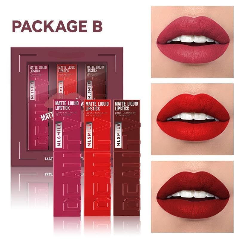 PACKAGE OPTIONS: Available in Package A featuring nude and pink tones, or Package B featuring bold reds and deep burgundy shades, each set includes 3 matte liquid lipsticks