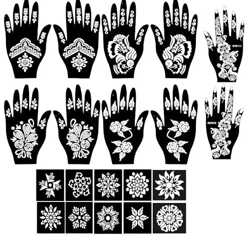 Mehndi Tattoo Stencil Set - 20pc Hand & Round Designs(Mehndi Tattoo Stencil 10 Pc)