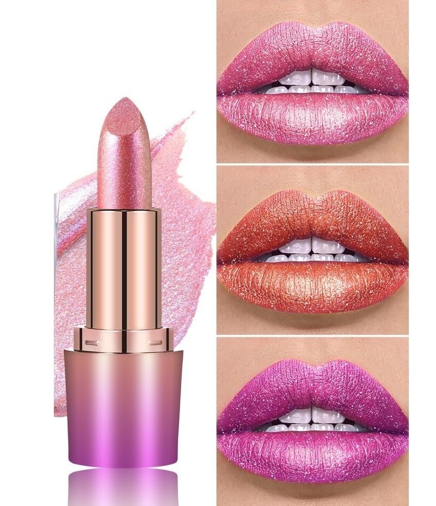 Metallic Pearl Glitter Lipstick - Long Lasting Non-Stick Formula(03)