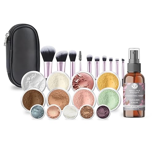 【 COMPLETE KIT 】: 20Gm Sifter Jars – Foundation, Concealer, Bronzer powder, Sweet Cheeks Blush, Veil Primer and Finishing Powder. 1 Yellow Corrector + 1 Green Corrector Powder, 5 Shades Eyeshadow Powders, 1 Retractable Makeup Brush, Brush Set with Protective Case, 4 oz Aloe and Cucumber Hydrating Mist and Makeup Setting Spray