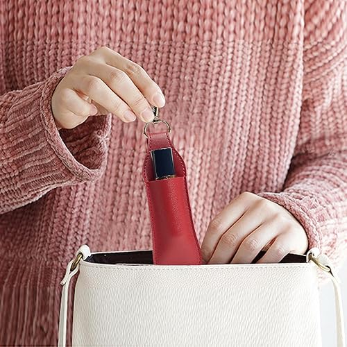 Portable Lipstick Holder Keychain - PU Leather Lip Oil Pouch(Red)