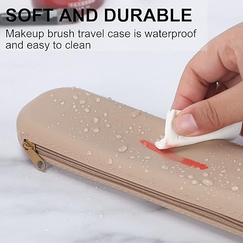 Fashion makeup brush holder with this silicone travel makeup brush is the latest with side zipper that allows you to put in or take-out easily from side zipper opening, the makeup brush case is travel essential for organizing makeup brushes for women.