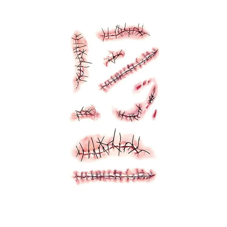 PACKAGE CONTENTS: Set of 16 realistic temporary tattoo stickers featuring various wound, scar, and stitch designs for Halloween and costume effects
