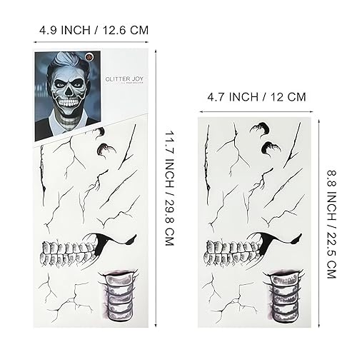 3 Sheets Scary Designs – Mix and match bloody gashes, exposed bones, and eerie patterns to create your perfect horror look.