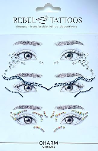 Easy To Apply & Stay On Well: Rebel Tattoos face jewels are attached to large adhesive layouts, so you don't have to place each jewel one at a time. All gems are self-adhesive, with pre-attached glues so it is easy to peel off and stick according to the designs. Besides, these stickers can be reused several times, clean them after the first time to use or the glue dried out, just reapplied with eyelash or body glue.