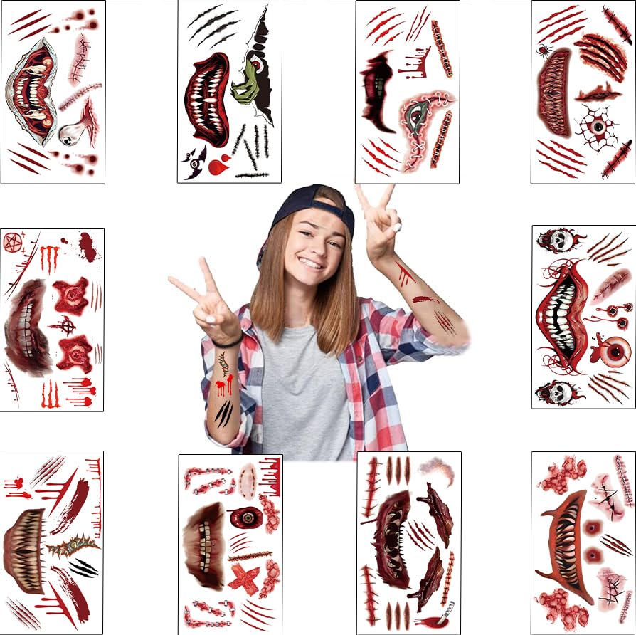 Scary Halloween Tattoos - 150+ PCS 3D Scars & Wounds