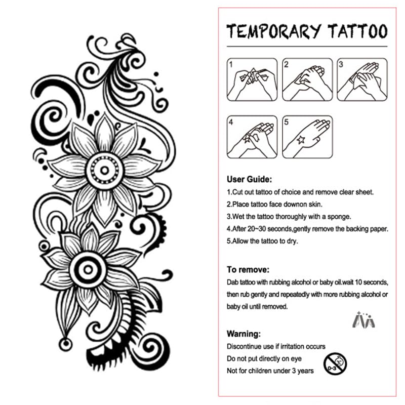 LONG LASTING: The temporary tattoo has excellent durability and won't come off easily even in the shower or when sweating. Depending on the area of application, our tattoos last from 3 to 6 days, and when you're ready to remove them, simply apply alcohol or baby oil and gently scrub the skin. Suitable for all skin types.