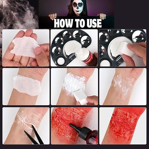 【Safe & Multi-Use】Non-toxic, skin-friendly formula ideal for Halloween, cosplay, theater productions, film sets, haunted houses and special effects makeup practice. Washes off easily after use.
