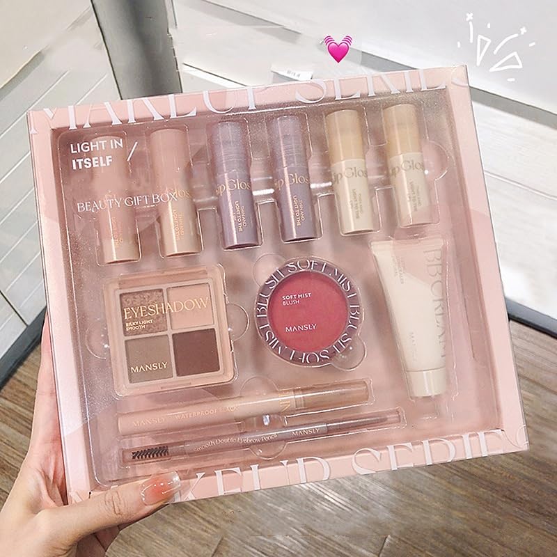 Full Makeup Kit -- This makeup set includes 1 x 4-color eyeshadow palette, 1 x blush palette, 1 x eyebrow pencil, 4 x lip gloss, 1 x eyeliner, 1 x BB cream, 1 x makeup box. The simple make up set is perfect for makeup artists or starters and beginners to start your makeup journey.
