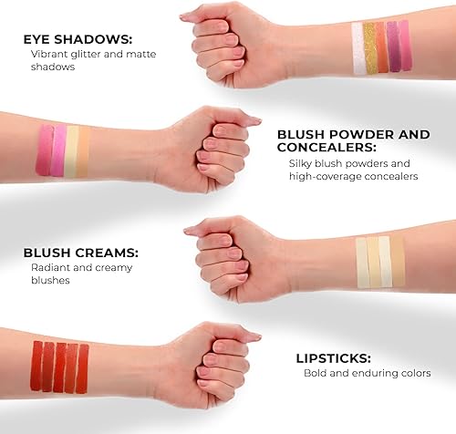 Universal Color Array: 2-Tier Makeup Kit for Teens Includes 86 assorted colors and shades according to your preference. Ideal in situations where a variety of shade options are needed. E.g. beginners, professionals or casting.