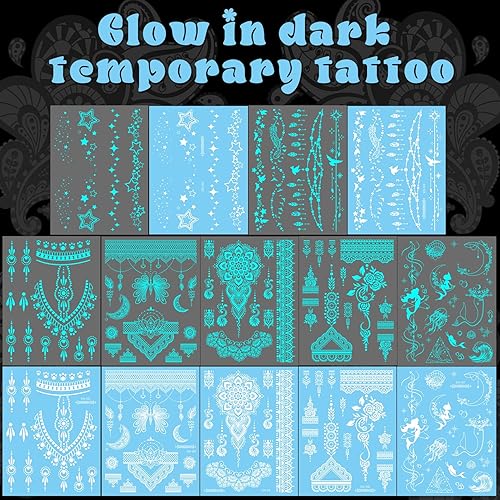 Fashion Style Luminous Design Fake Tattoos For Adults:3D DIY Luminous Temporary Tattoos Stickers For Women Party Favors Supplies, Birthday Gifts, Outdoor, Group Activities, Tumblers Cups, Festival Decorations, Stocking Fillers, Basket Goodie Bags Stuffers, Party Favor Supplies,If you want tattoos to glow in dark quickly, tattoos need to be exposed to strong light ,such as phone flashlight