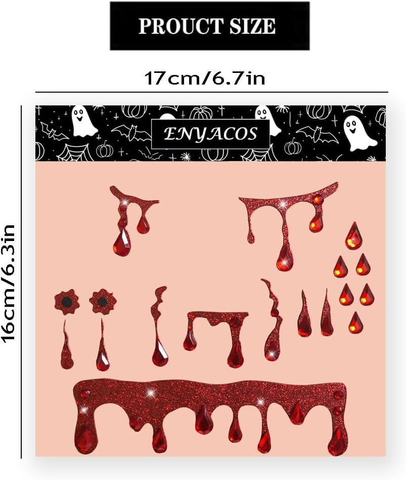Bloody Red Face Jewels for Halloween – Designed with glittering red face gems and rhinestones, these blood face stickers and fake blood stickers bring your vampire makeup kit for women to life. Perfect for womens Dracula costumes or female vampire accessories.