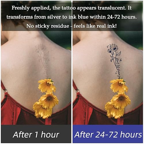【EASY TO APPLY】To apply a temporary tattoo, first cut out the design and remove the transparent paper cover. Place the tattoo face down on the desired area of skin and wet the surface with a damp sponge. Wait 20-30 seconds before gently peeling off the paper to check if the tattoo has transferred. If not, press down and wet again. Once the tattoo has transferred, remove the paper and enjoy the beauty of your temporary tattoo.